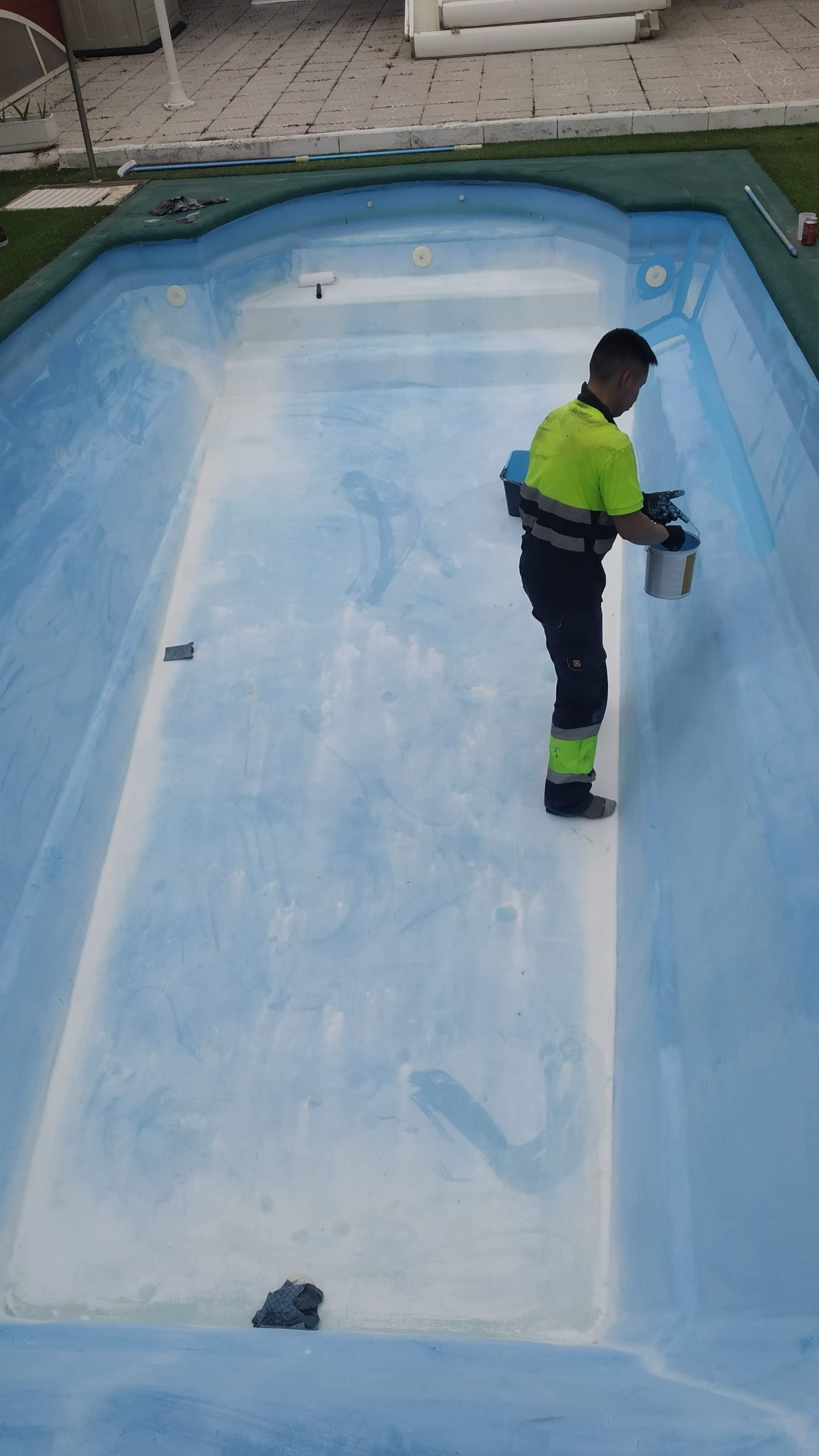 Pintamos tu piscina de obra o de fibra. Trabajamos con las mejores marcas del mercado